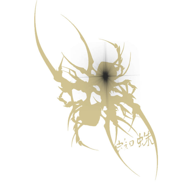 Kumo (蜘蛛) (Spider): an eight-legged predatory arachnid with an unsegmented body consisting of a fused head and thorax and a rounded abdomen. Spiders have fangs that inject venom into their prey, and most kinds spin webs in which to capture insects.